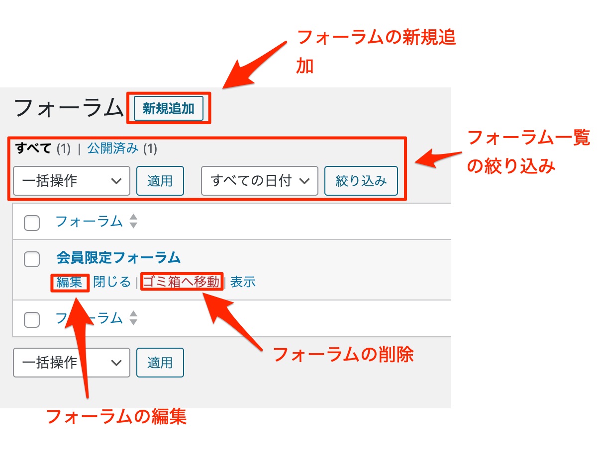 「経営者のフォーラム」「マーケティングのフォーラム」「雑談フォーラム」のように複数のフォーラムを設置することができます。